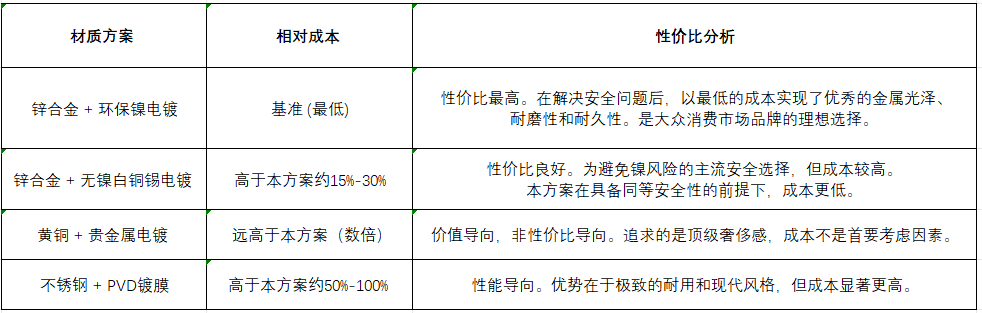 免責聲明: 本方案完全基于您所提出的“鎳材質經過環保驗證,無過敏風險”這一核心前提。在實際應用中,建議務必向終端品牌方清晰傳達并提供相應的環保認證文件,以確保信息透明和商業合規。